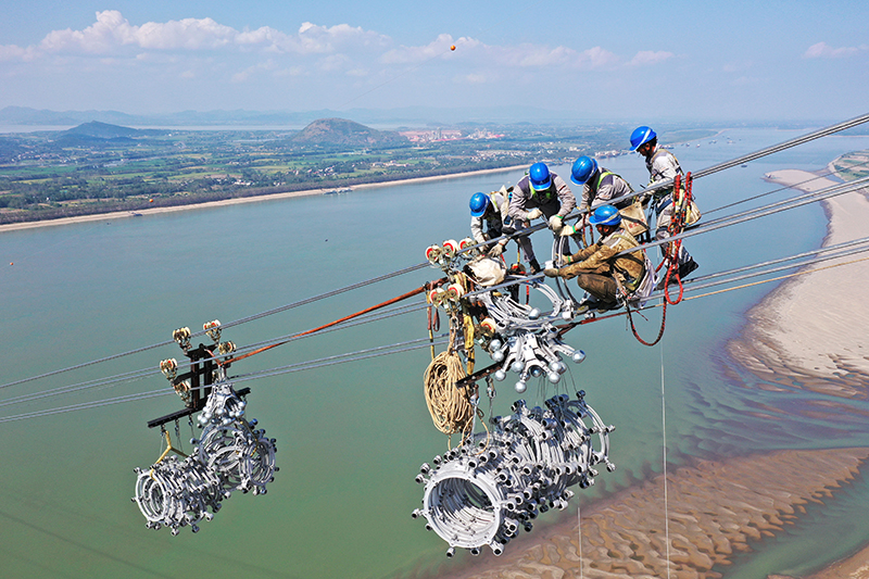 9月13日下午,历经13天的连续施工,“西电东送”大动脉白鹤滩—浙江±800千伏特高压直流输电工程重庆段顺利完成长江大跨越放线作业,标志着“西电东送”工程取得重大进展。